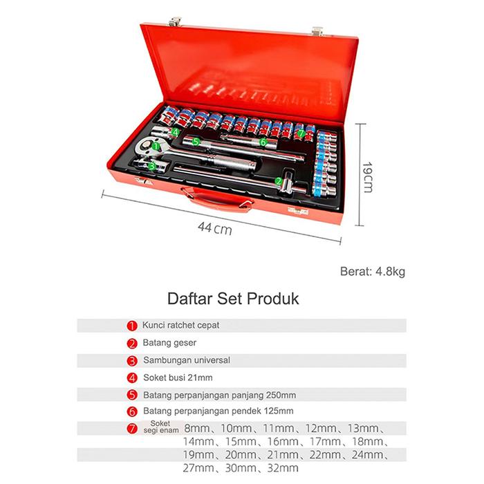 KUNCI SOCKET TERKUAT! Set 24Pcs 1/2" Chrom Vanadium - Tukang Las & Mekanik Pada Pake Ini - 24 PCS