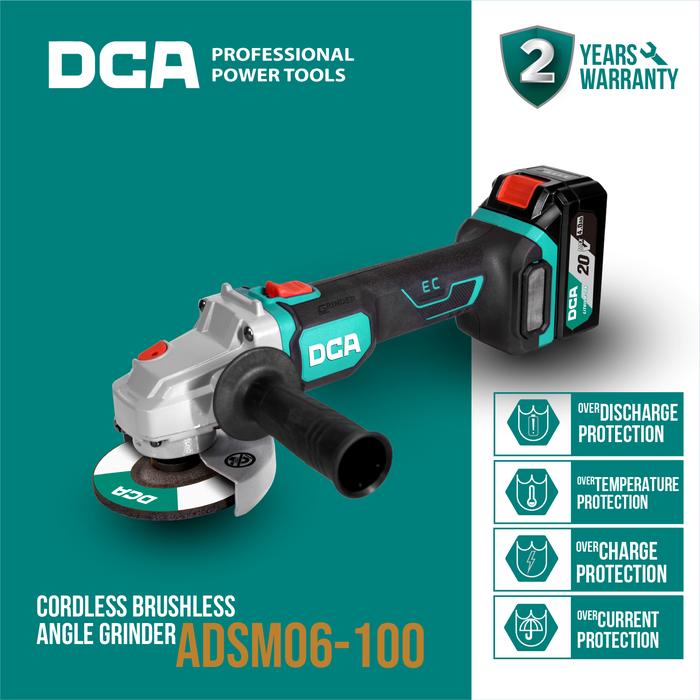 DCA Brushless Angle Grinder / Gerinda Tangan Baterai 20Volt 100mm ADSM06-100Z (UNIT ONLY)