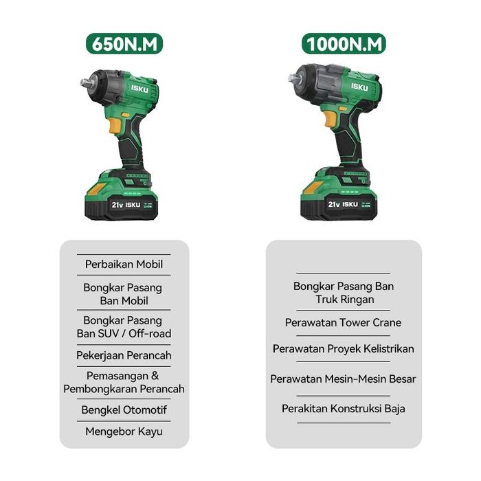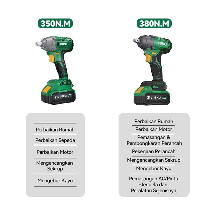 ISKU 21V Impact Wrench Brushless 650N.M Kunci Pas Listrik Torsi Super untuk Bongkar Ban Mobil & Industri - 380N.M Wrench