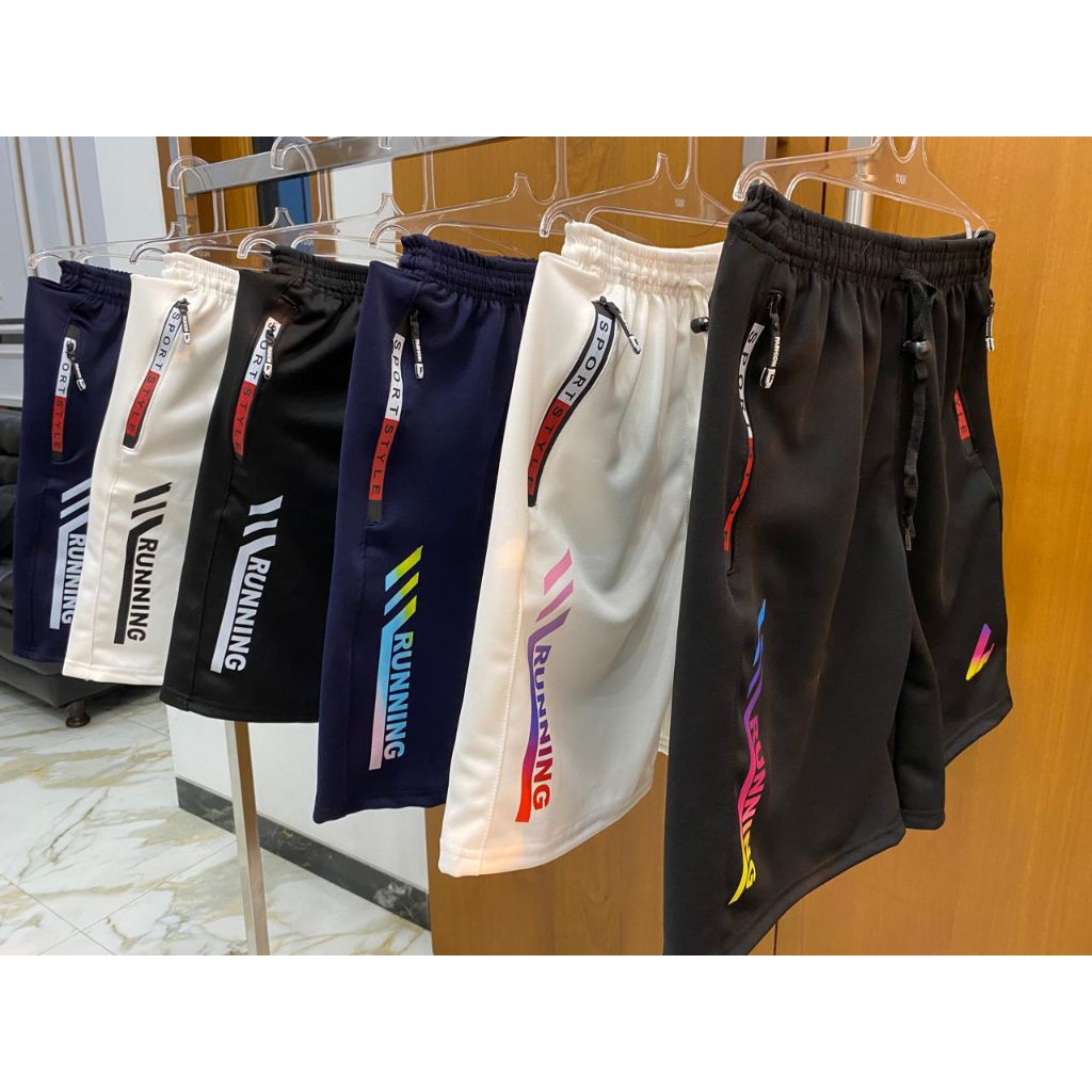 Running / 100 Ribu Dapat 3 Celana Pendek Olahraga - Celana Running Pria Sport - Saku Zipper Gym Fitnes Bahan Scuba Tebal
