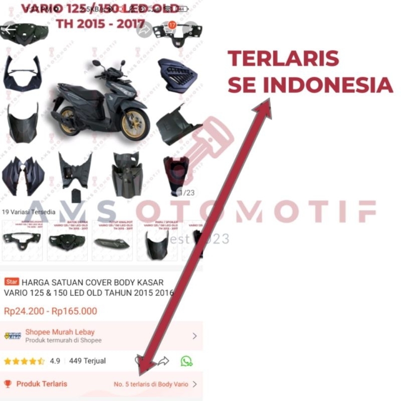 COVER BODY KASAR VARIO 125 & 150 LED OLD (K59) TAHUN 2015 2016 2017 - DASHBOARD , DEK KOLONG , DASBOR , BATOK , SPAKBOR , DEK KUNCI/LEGSHIELD