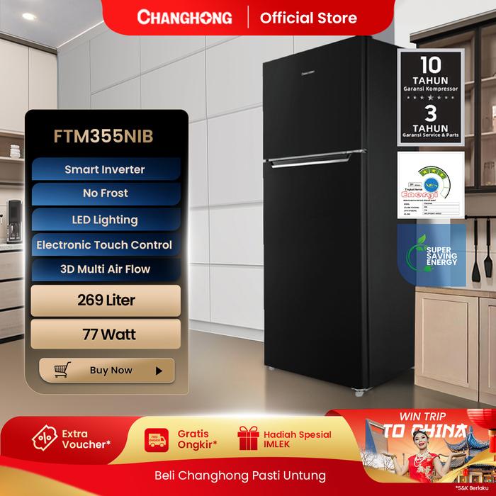 CHANGHONG KULKAS LEMARI ES 2 PINTU FTM355NIB SMART INVERTER [269L]