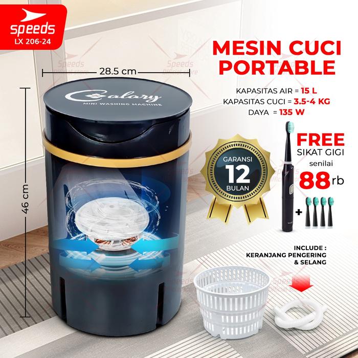 SPEEDS MESIN CUCI MINI PORTABEL MINI WASHING MACHINE PENGERING 206-24 - 22 BRU