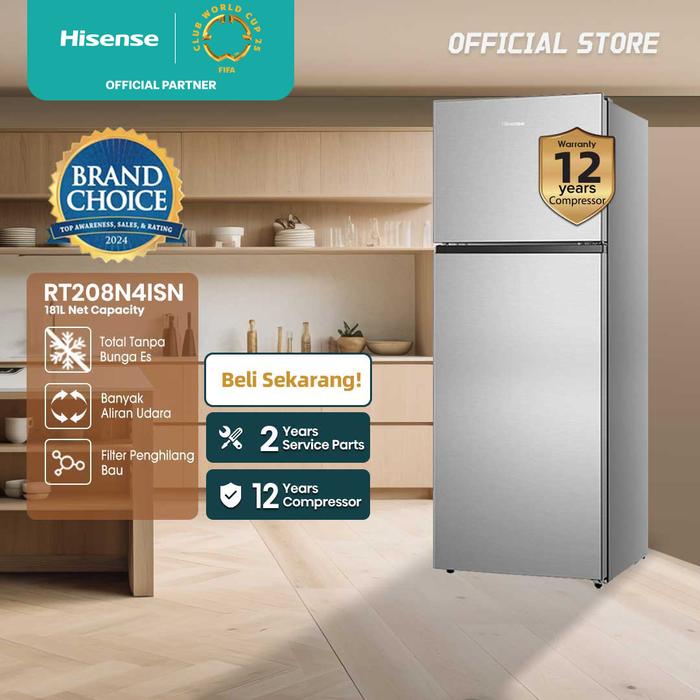 HISENSE KULKAS 2 PINTU 181L RT208N4ISN - SILVER