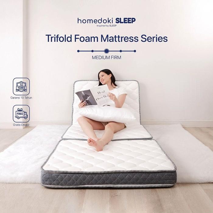HOMEDOKI TRIO/KASUR BUSA LIPAT LANTAI/KASUR GULUNG/TRAVEL MATTRESS - MEDIUM FEEL