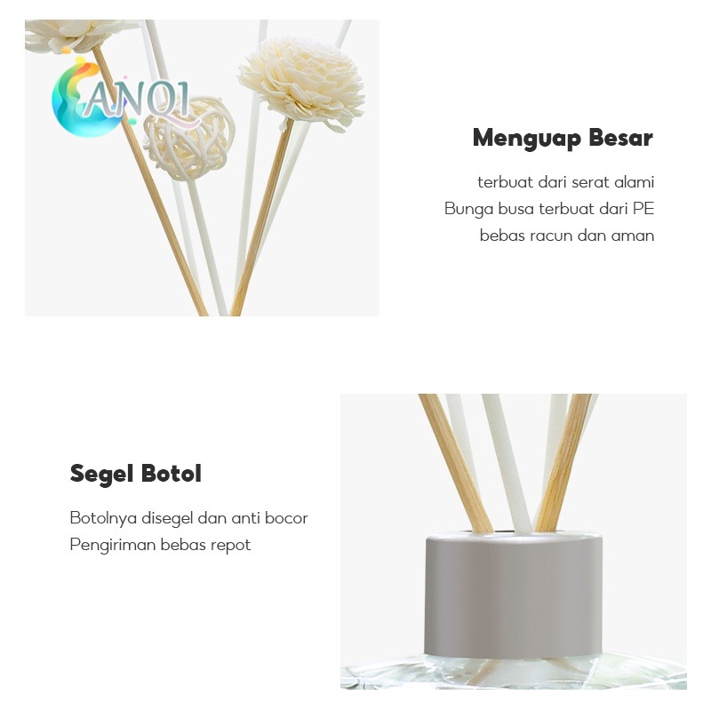 ANQI SHOP REED DIFFUSER ALAT PENGHARUM RAN PARFUM ESSENSIAL OIL HIASAN STIK KAYU + BUNGA