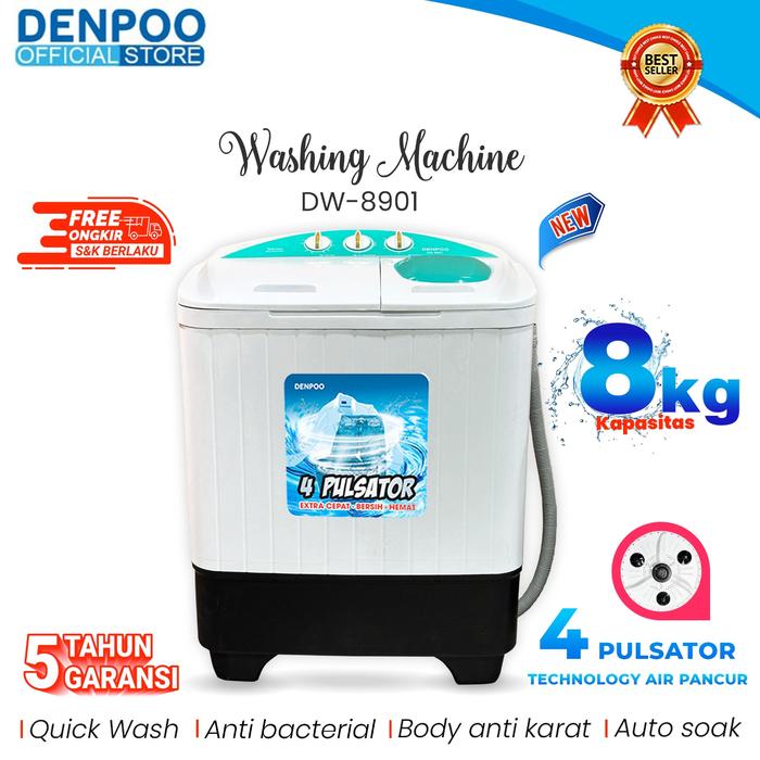 DENPOO MESIN CUCI 2 TABUNG 8KG KIRIM SELURUH WILAYAH INDONESIA - BIRU-DW8908