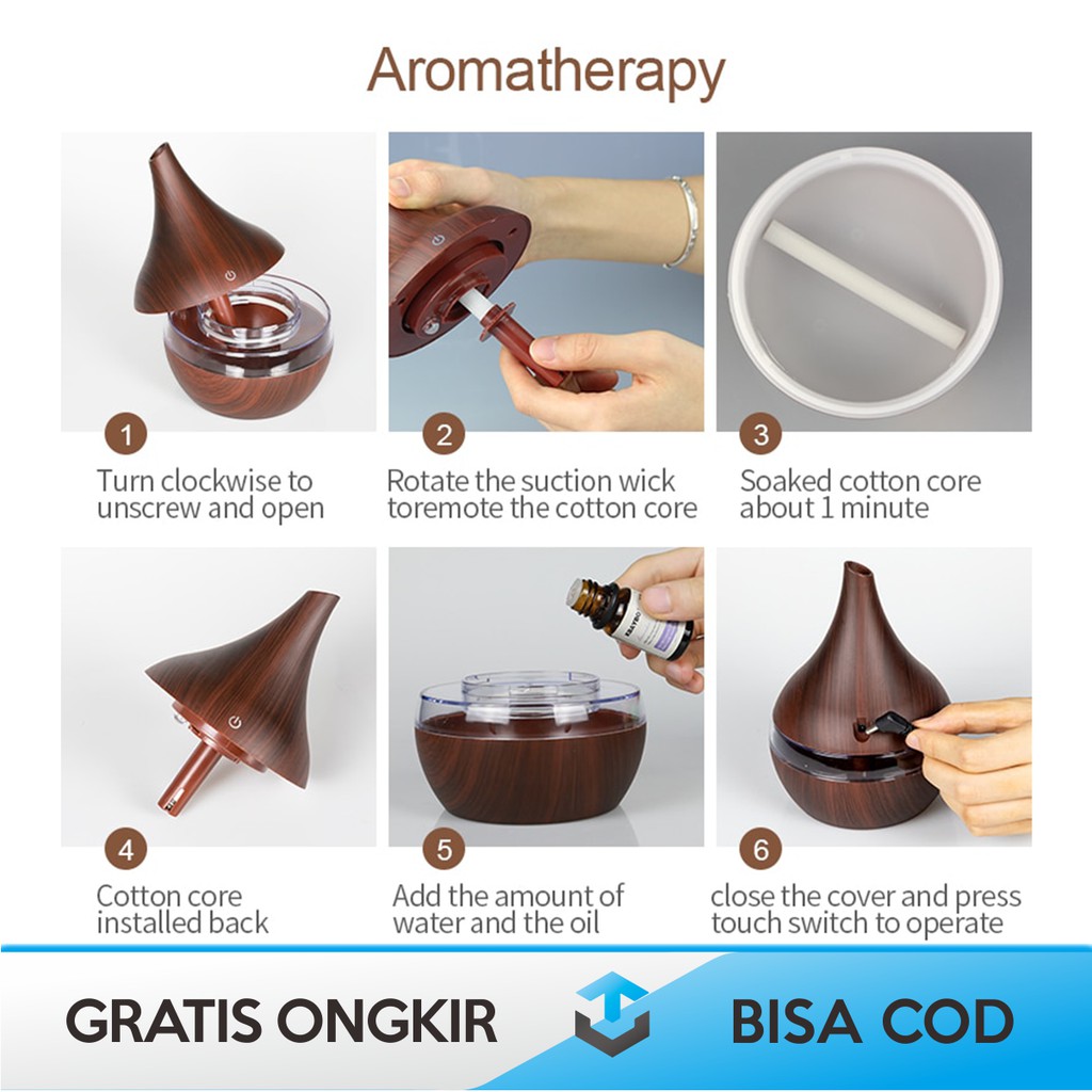 AIR HUMIDIFIER DIFFUSER AROMATHERAPY K-H98 DESIGN KAYU LED RGB LIGHT