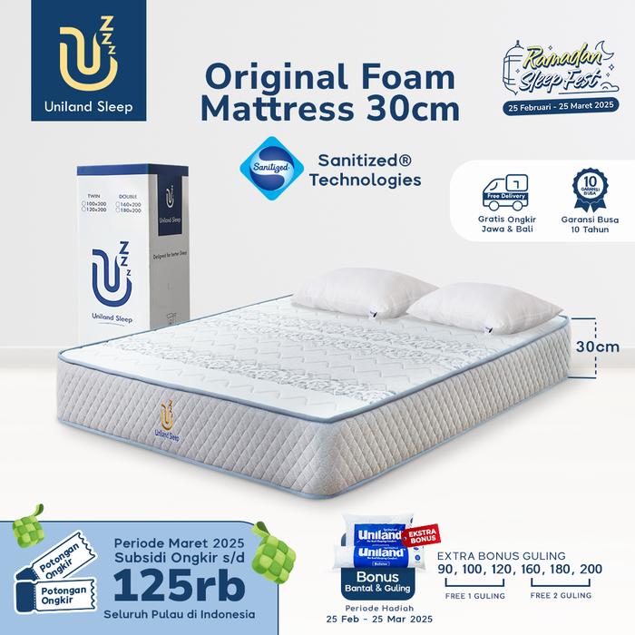KASUR BUSA UNILAND SLEEP ORIGINAL 30CM FOAM MATTRESS BOX FREE BANTAL - 90X200