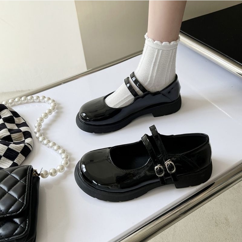SEPATU WANITA LOAFERS / DOCMART FLAT TERBARU IMPORT PREMIUM QUALITY 8045 MARY JANES PLATFORM SHOES GESPER HITAM GLOSY SEPATU SEKOLAH REMAJA PEREMPUAN/CEWEK GAYA KOREA 005 VIRAL KEKINIAN BISA