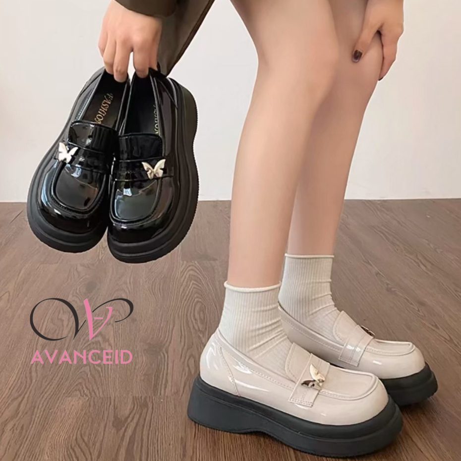 AVANCEID TAERI LOAFERS SEPATU SNEAKERS WANITA KERJA DOCMART HITAM