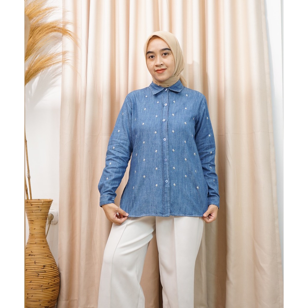 Anyostore DENIM ALL MODEL Atasan Kemeja Wanita Denim Formal Kantor