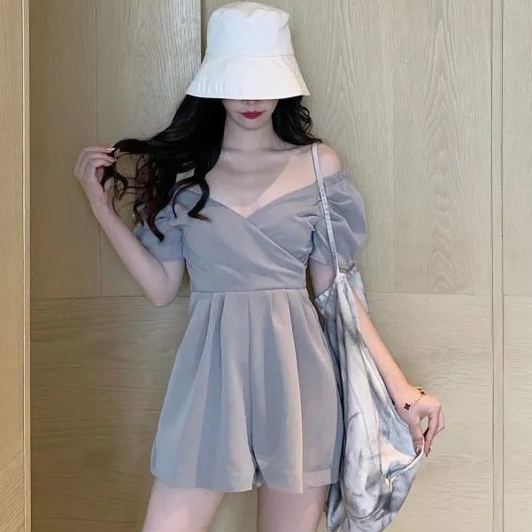 Jumpsuit Short Puff Sleeve Off Shoulder Wide Leg Skirt 1127 (S/M/L/XL)