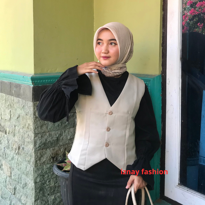 Iznay Fashion - Vest Outer V Neck Tanpa Lengan Atasan Wanita Kekinian