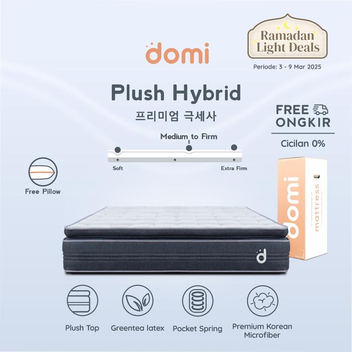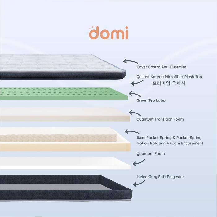 DOMI PLUSH HYBRID MATTRESS 28CM / KASUR POCKET PREMIUM GREENTEA LATEX - 90X200