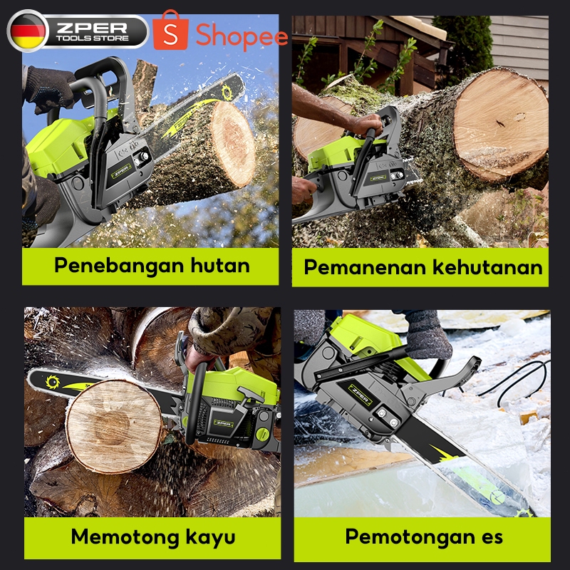 ZPER 54.6CC 20inch Chainsaw Bensin 2Tak Mesin P0T0NG Kayu Gergaji Kayu Super T4J4M Besi 2200W