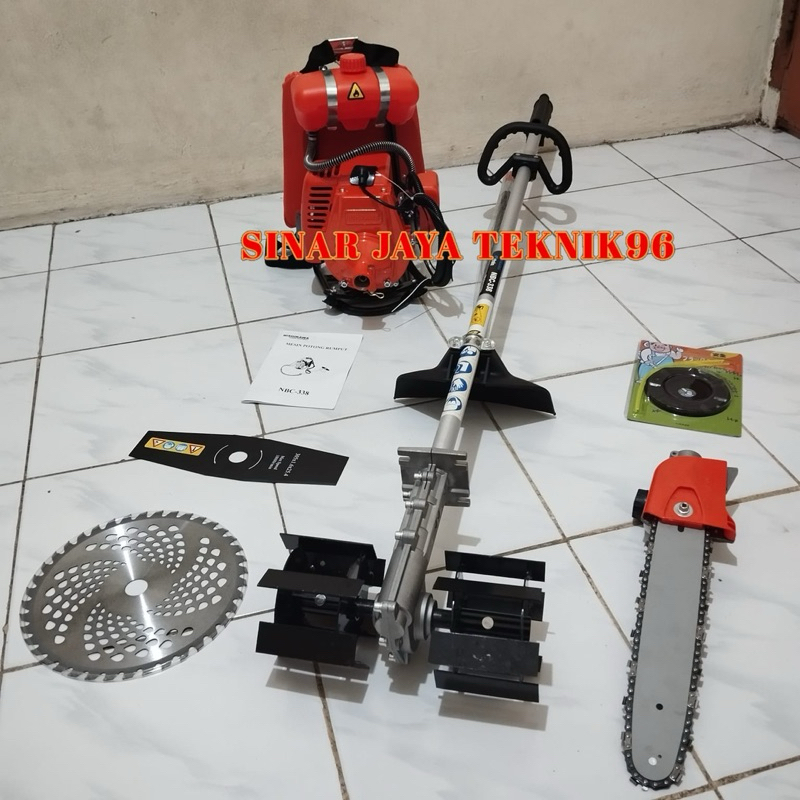 Mesin P0T0NG Rumput 2 Tak Komplit Penyiang Gulma + Chainsaw P0T0NG Kayu Multifungsi