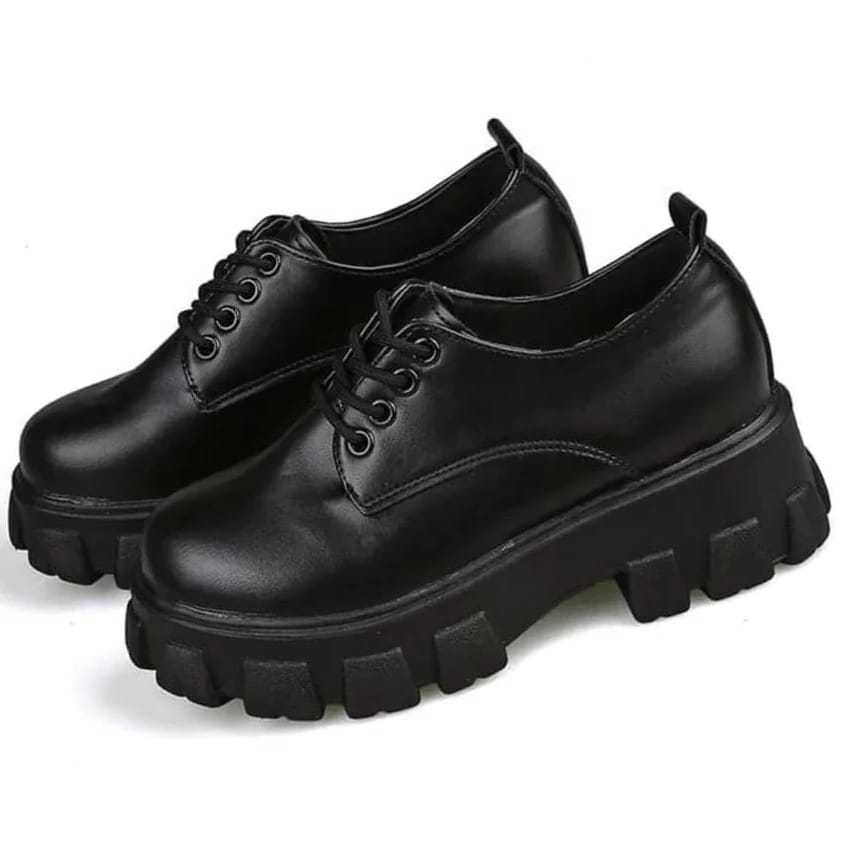 SEPATU DOCMART SNEAKERS BOOTS FASHION WANITA KOREA STYLE BLACK GLOSSY
