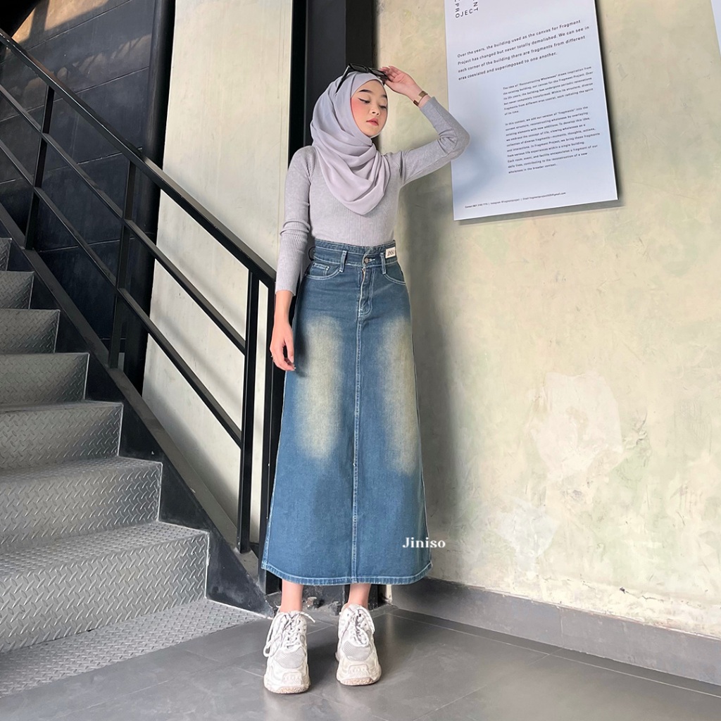 JINISO - Ultra Highwaist Rok Slit Seventy Jeans Panjang