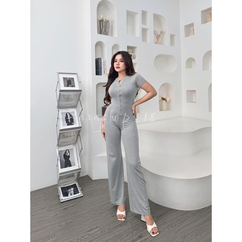 Jumpsuit Wanita Spandek Amira Kancing Polos Rayon