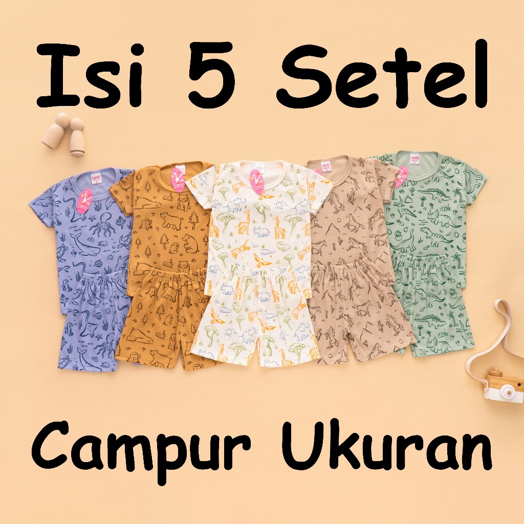 (ISI 5 SETEL) Setelan Anak Bayi Laki Laki Rib Jungle Series/ Baju Bayi Laki Laki / Baju Anak Laki Laki / Baju Anak Anak