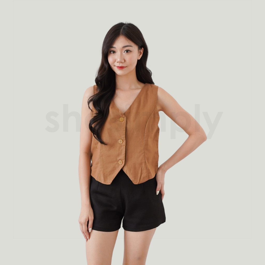 Shesimply Vest Bora Top / Atasan Vest Wanita / Blouse Casual / Rompi Kerah V-Neck / Outer Premium / Fashion Office / Korean Style