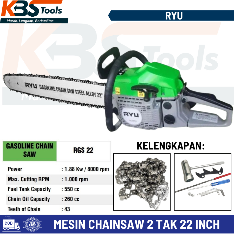 RYU Mesin Chainsaw Gergaji Kayu Pohon 2 Tak 22" Bar - PORTABLE REFFIloline Chain Saw RGS 22