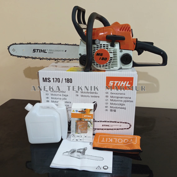 Chainsaw STIHL MS 180 Komplit Siap Pakai + Bar-Rantai 16"/27T Mesin P0T0NG Kayu Gergaji Pohon Senso