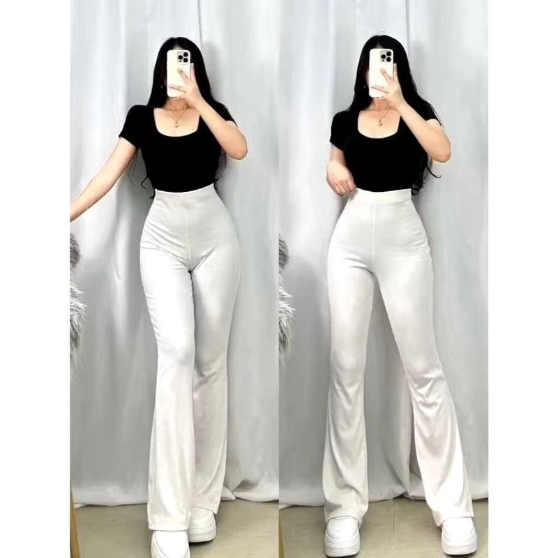 Celana Fit & Flare Pants Cutbray Scuba Pinggang Highwaist Bahan Stretch Melar Elastis Silmy
