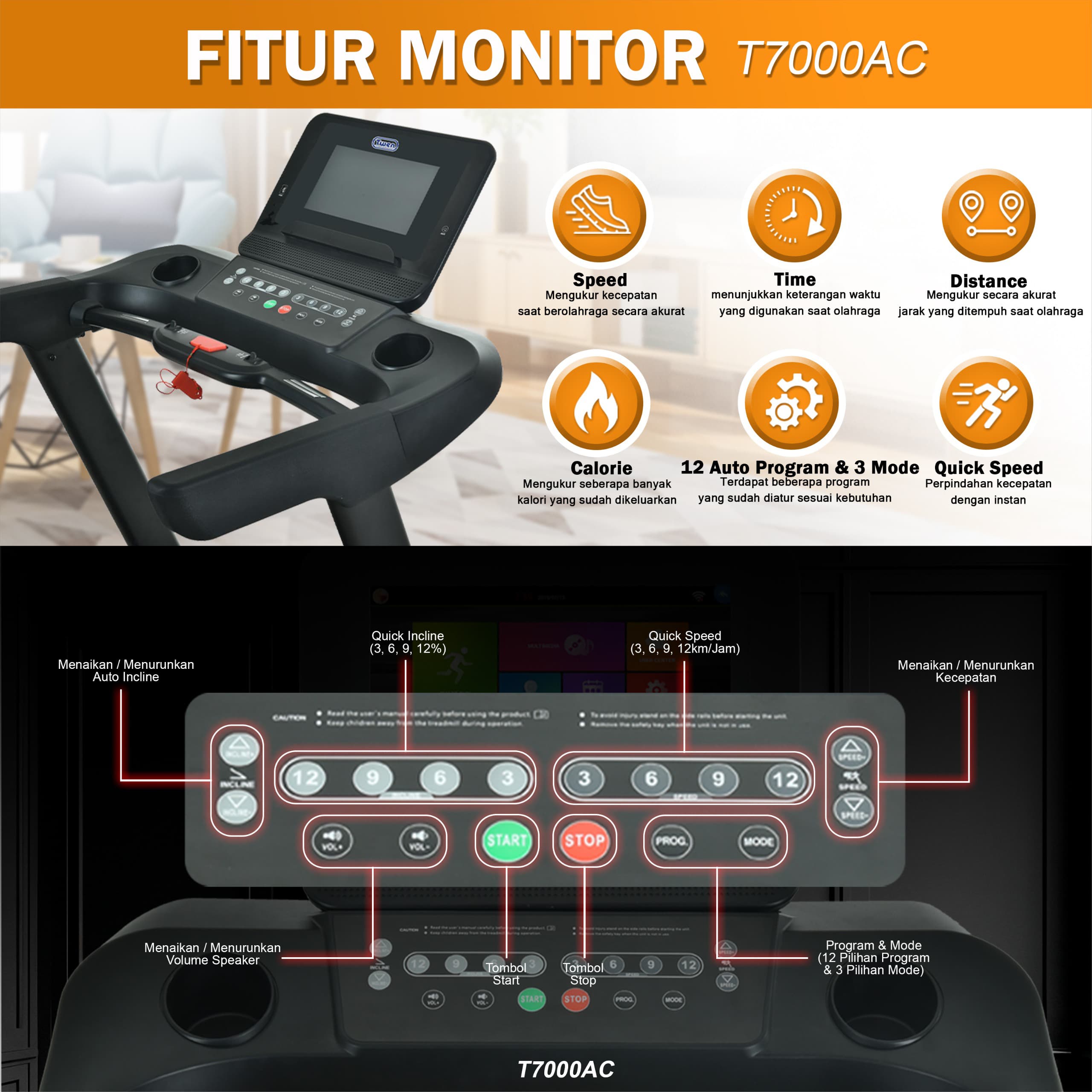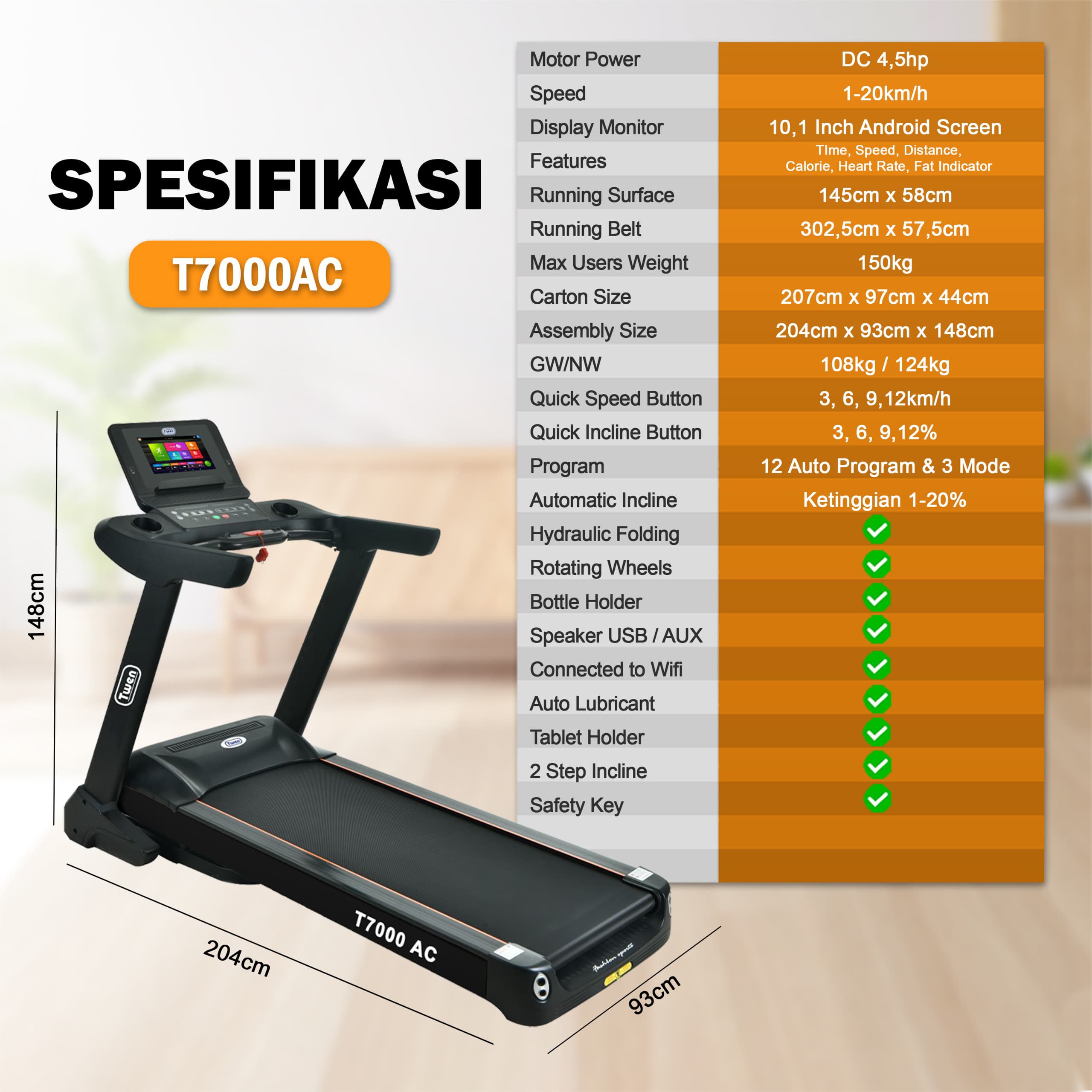 TWEN T7000AC Treadmill Listrik Treadmill Portable Treadmill Multifungsi Treadmil Lipat Alat Olahraga