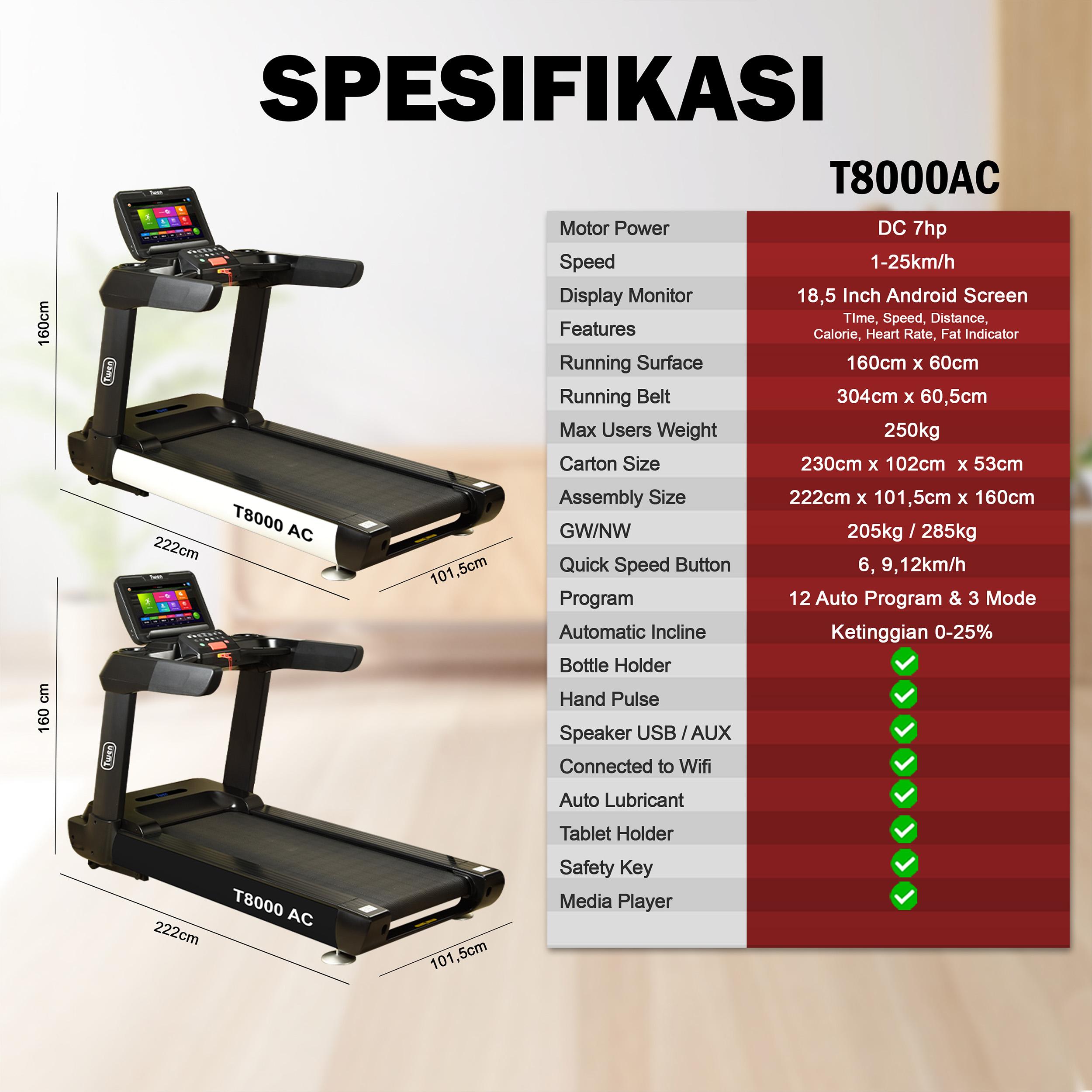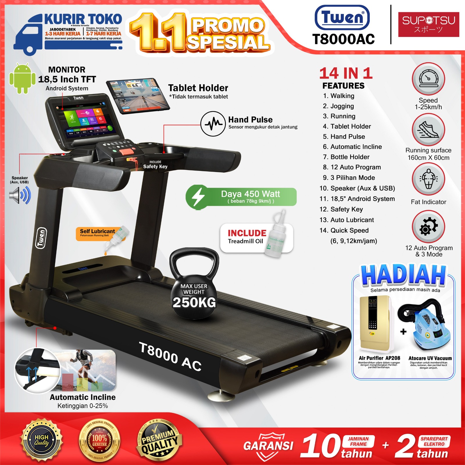 TWEN T8000AC Treadmill Listrik Treadmill Portable Treadmill Multifungsi Treadmil Lipat Olahraga