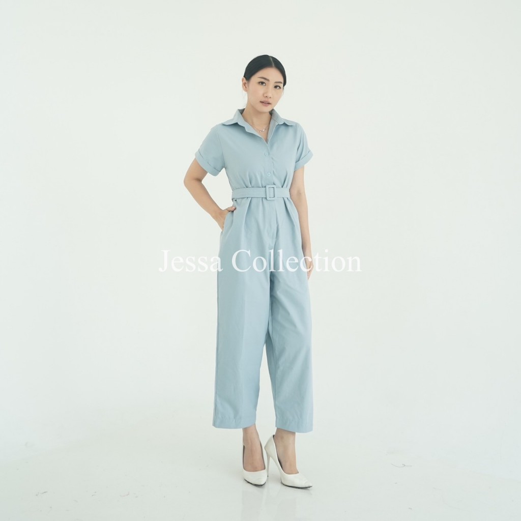 Pieters Long Jumpsuit TH 1102 / 1113 KATUN OXFORD Overall Wanita Celana Panjang Lengan Pendek Motif Polos Casual Simple Belt Pinggang