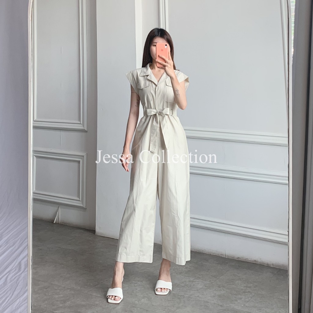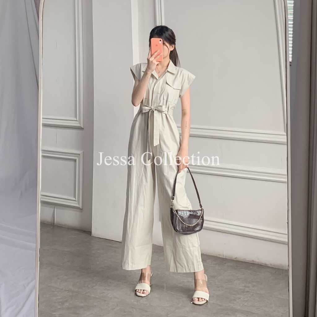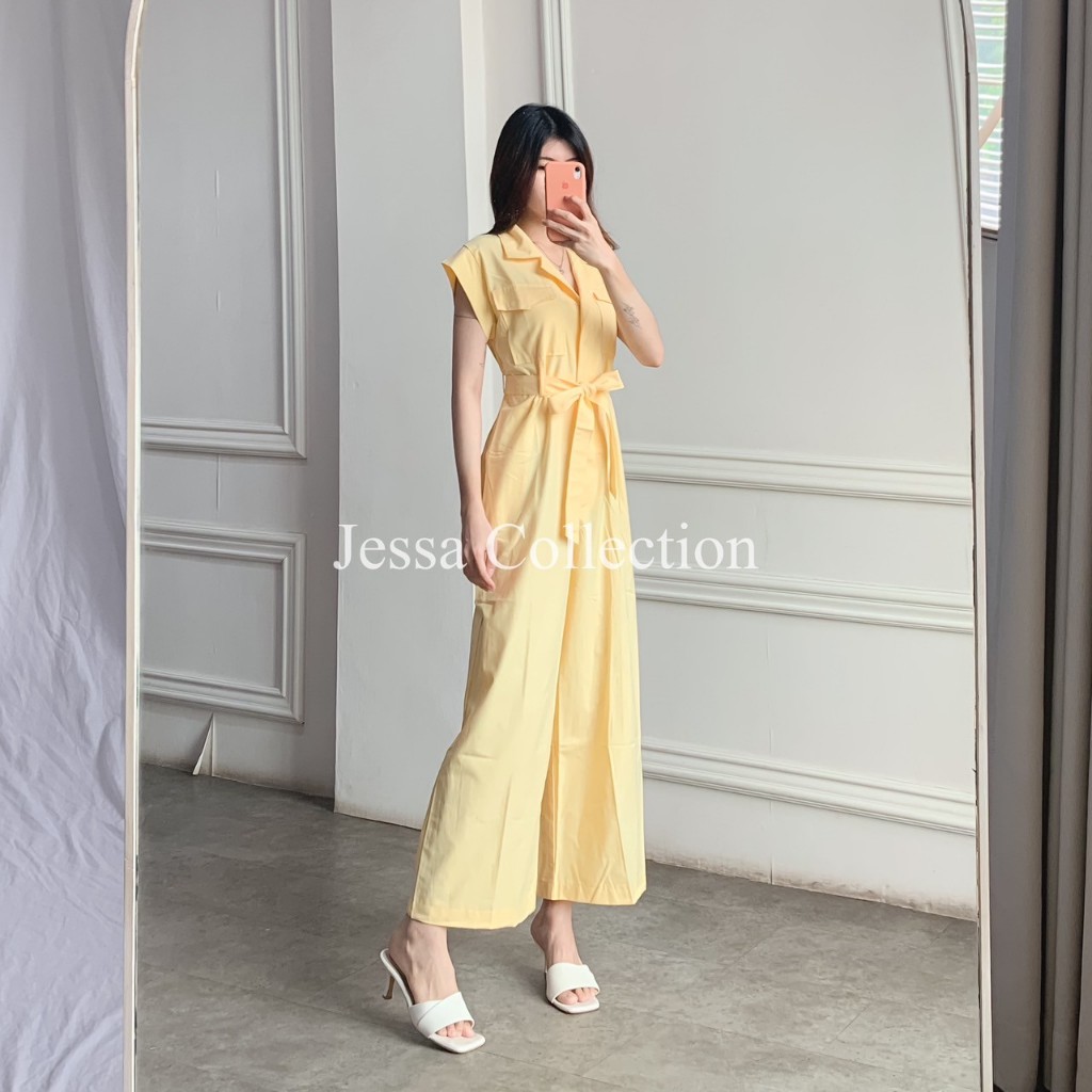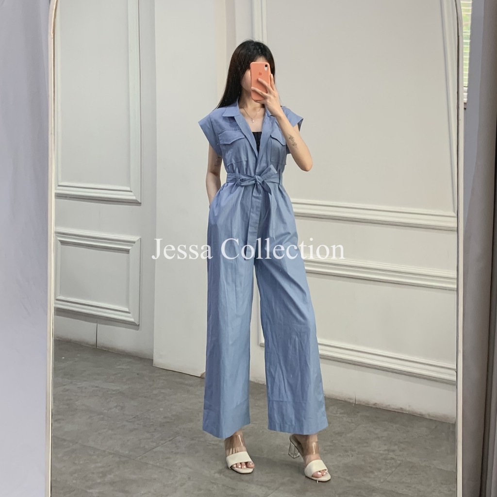 Premium Odysee Long Jumpsuit TH 992 1071 COTTON Overall Wanita Pocket Terusan Celana Panjang Tangan Pendek Motif Polos Casual