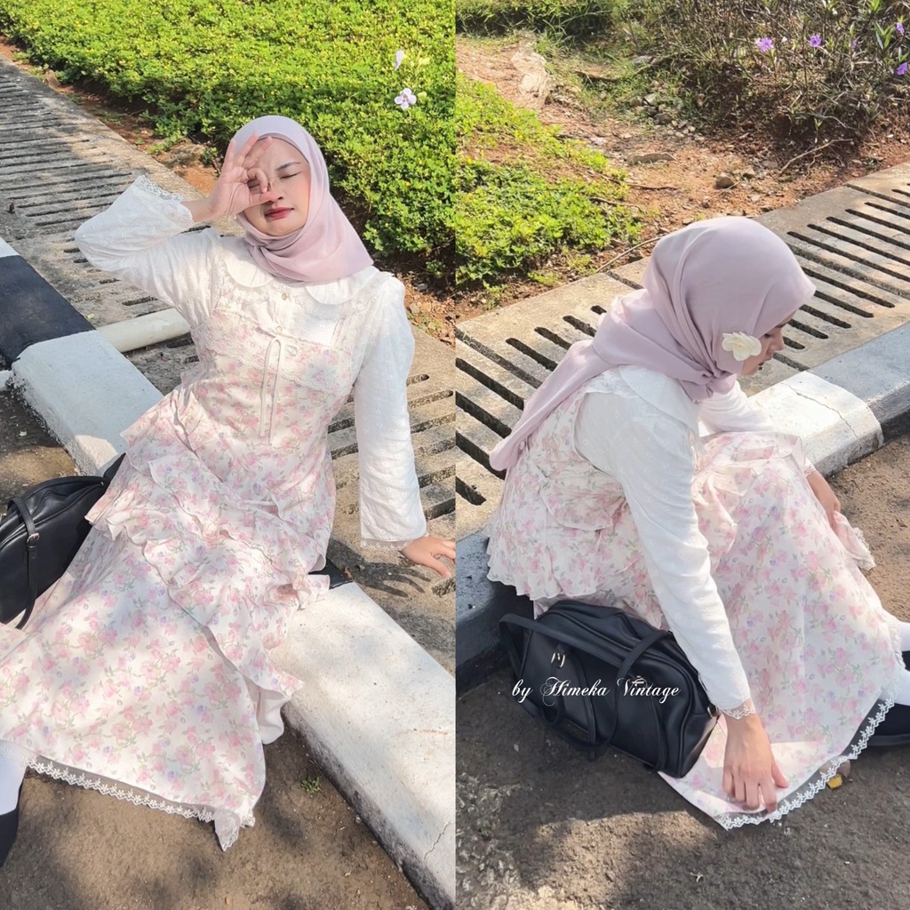 Himeka Vintage - Tiffany Overall (Special Pattern) - (konsultasi dulu sebelum membeli) Coquette Cottagecore Overall - Floral Overall Dress -Overall bunga bunga