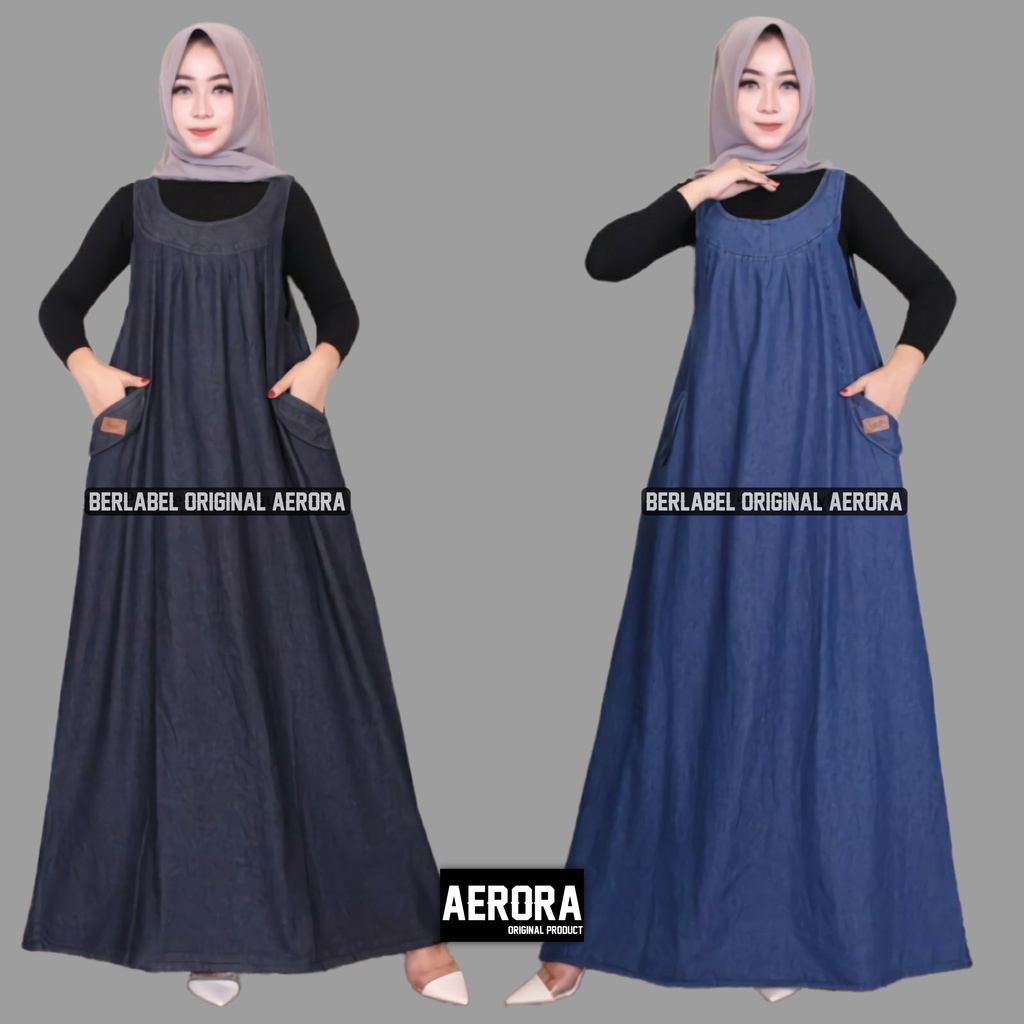 Aerora Baju Kodok Overall Overal Dress Rok Panjang Jeans Wanita Korean Style Polosa Overall Allsize