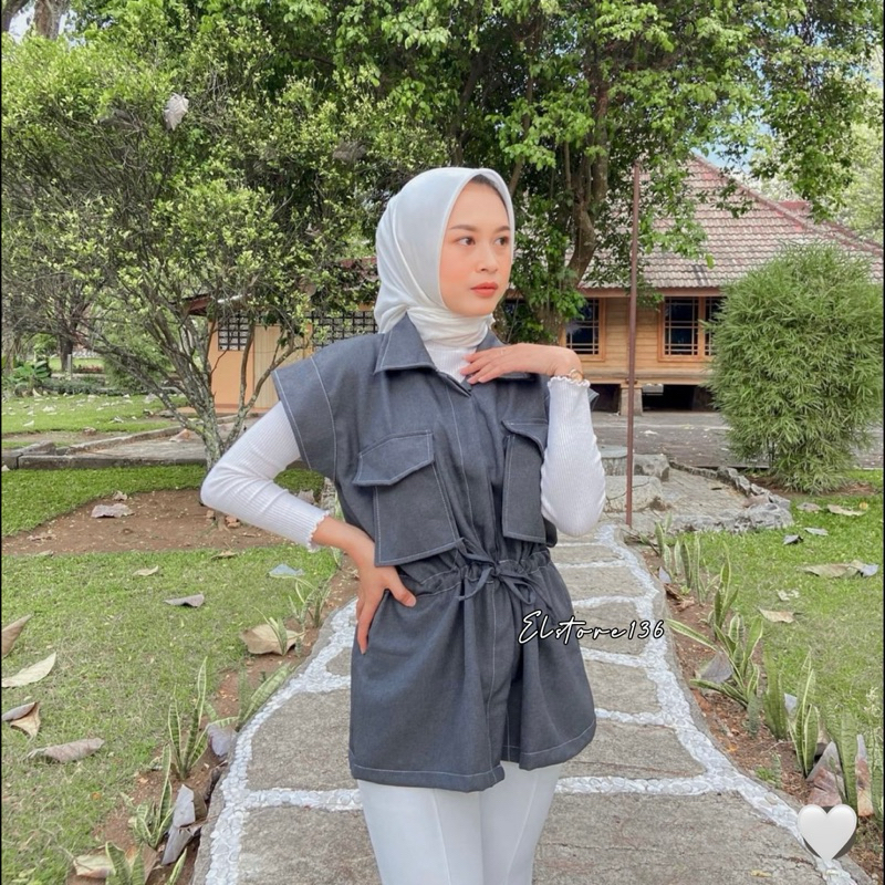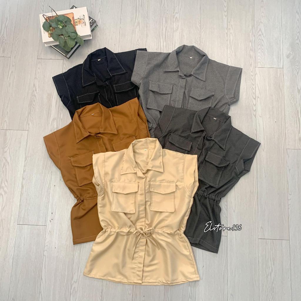 A Wear - Ghea Top Outer Tangan Pendek Pocket Shirt Semiwoll