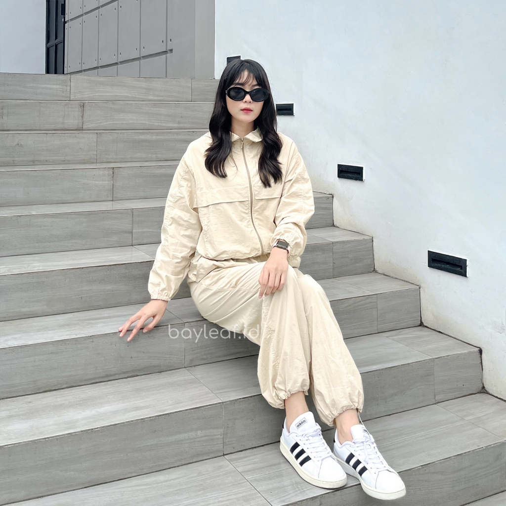 Bayleaf.id Owen Jacket Croptop Polos / Jaket Parasut Olahraga Wanita
