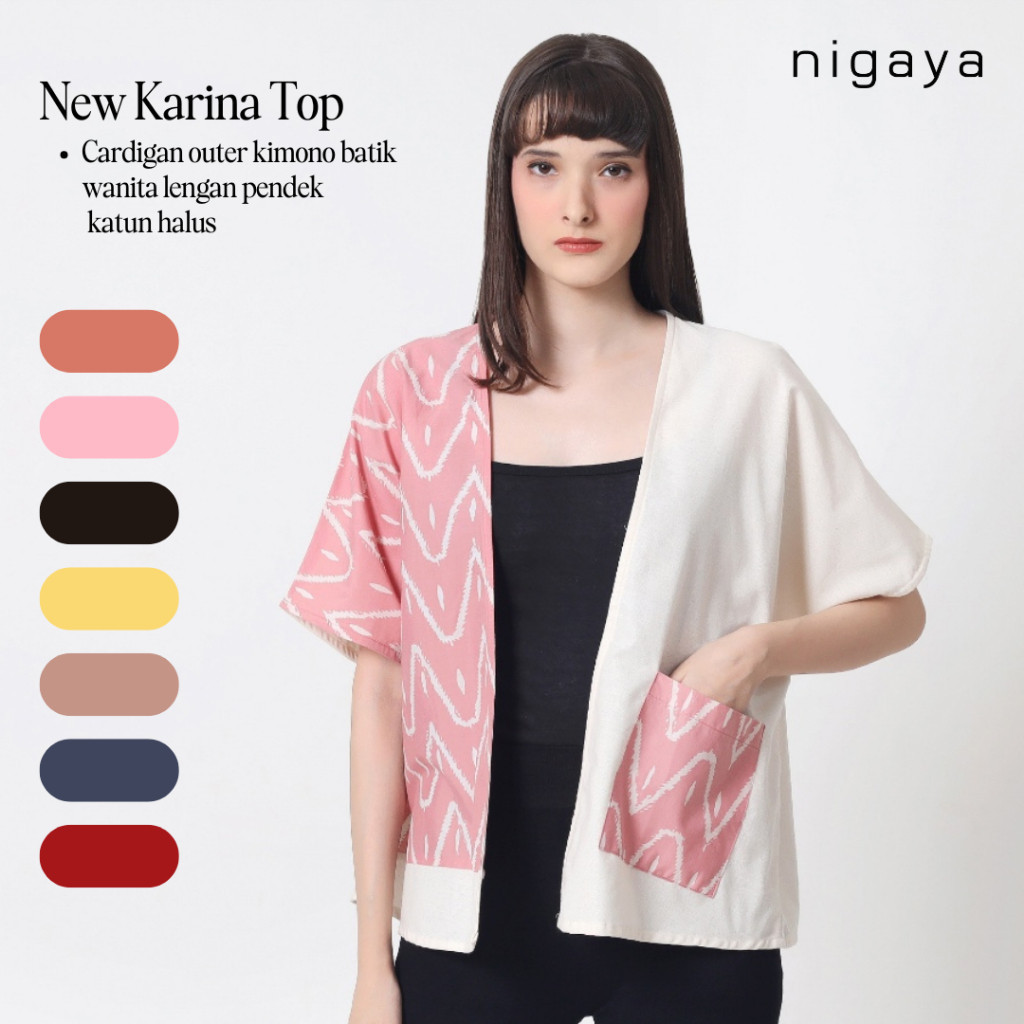 Nigaya official - New Karina Top - Cardigan outer kimono batik wanita lengan pendek katun halus