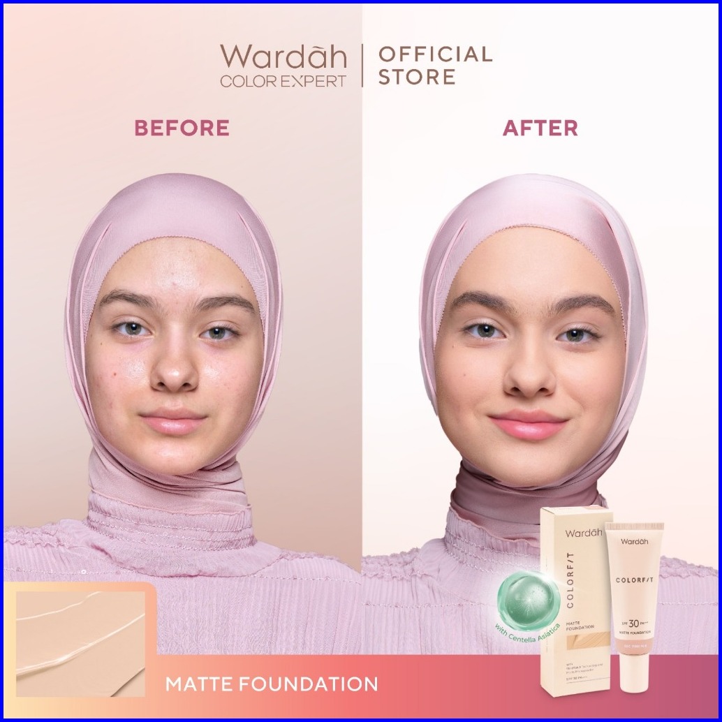 Wardah Colorfit Matte Foundation - Liquid Foundation Spf 30pa Dengan Oil Control Tahan Lama Hingga 12 Jam - Makeup