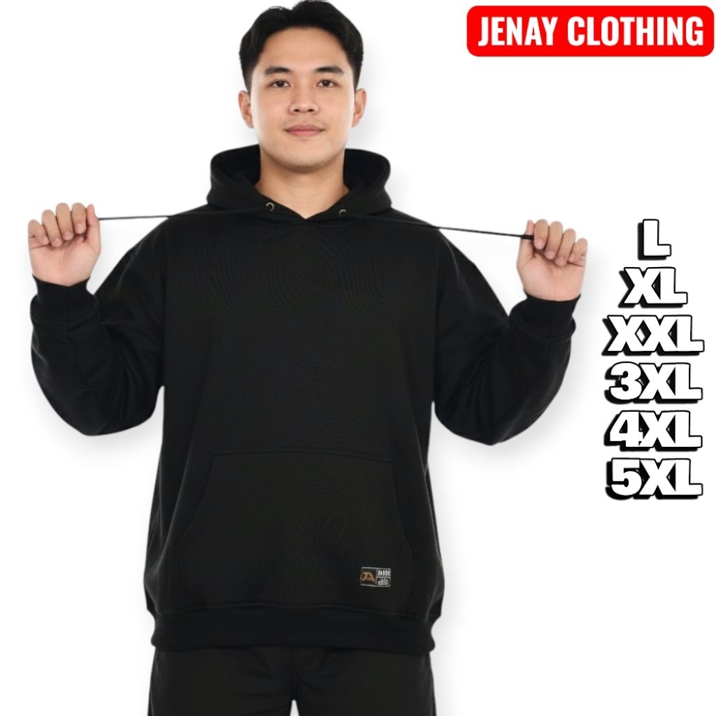 JENAY - Hoodie Polos Jumbo Big Size Pria Wanita L XL XXL, XXXL, XXXXL, XXXXXL Hitam