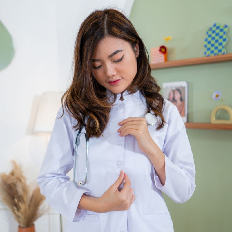 LINCURT - Baju Perawat Putih Set Klinik Rumah Sakit Wanita Lengan Panjang/Pendek