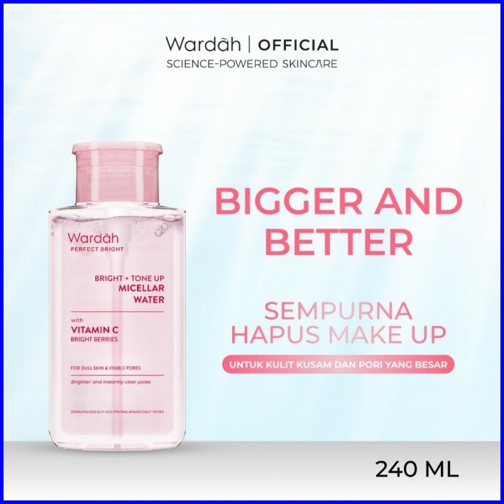 Wardah Perfect Bright Tone Up Micellar Water - Micellar Water Dengan Micelles Pencerah - Make Up Remover Lebih Bersih Da