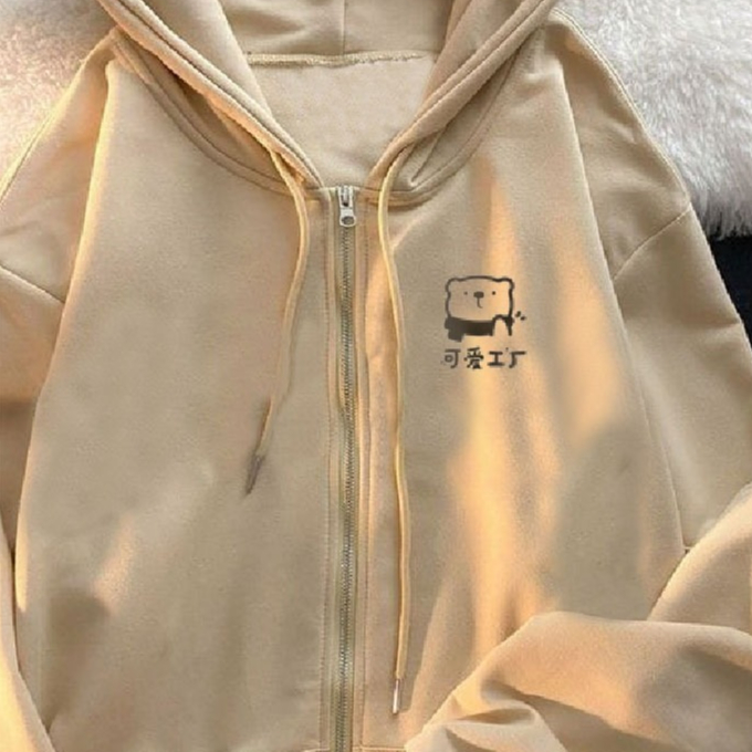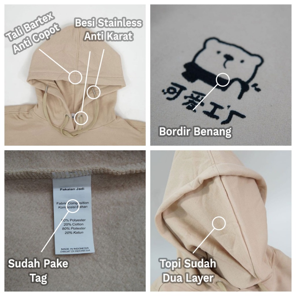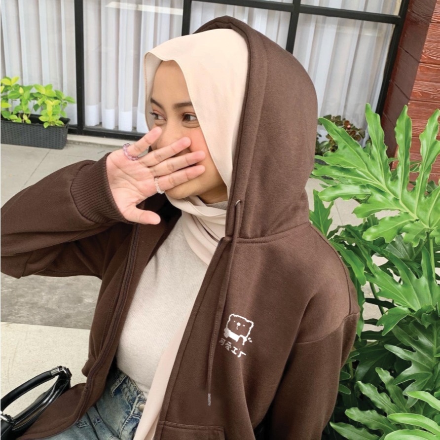 Parisdivarious Hoodie Zipper Cute bear (Bordir) Size S - XXL ( Pria & Wanita )
