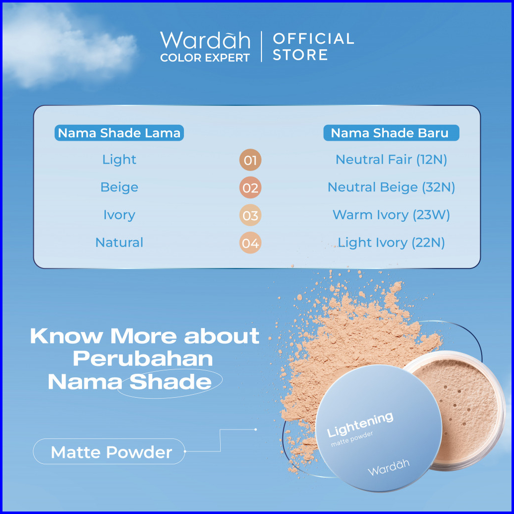 Wardah Lightening Matte Powder 20 G - Bedak Tabur Dengan Smooth-matte Finish Yang Diformulasikan Dengan Spf 20 Pa Dan Se