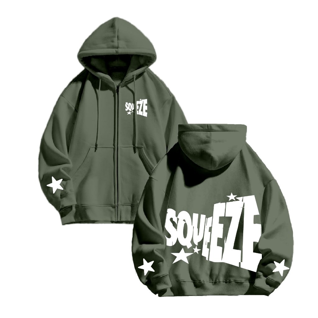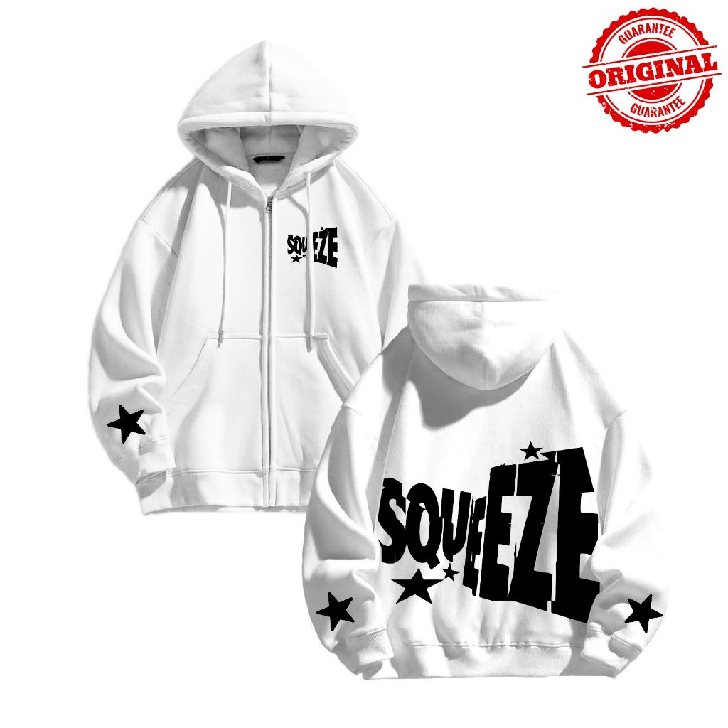 Hoodie Jaket Zipper [JYB] Oversize SQUEEZE (sablon) size M-XXL UNISEX pria&wanita