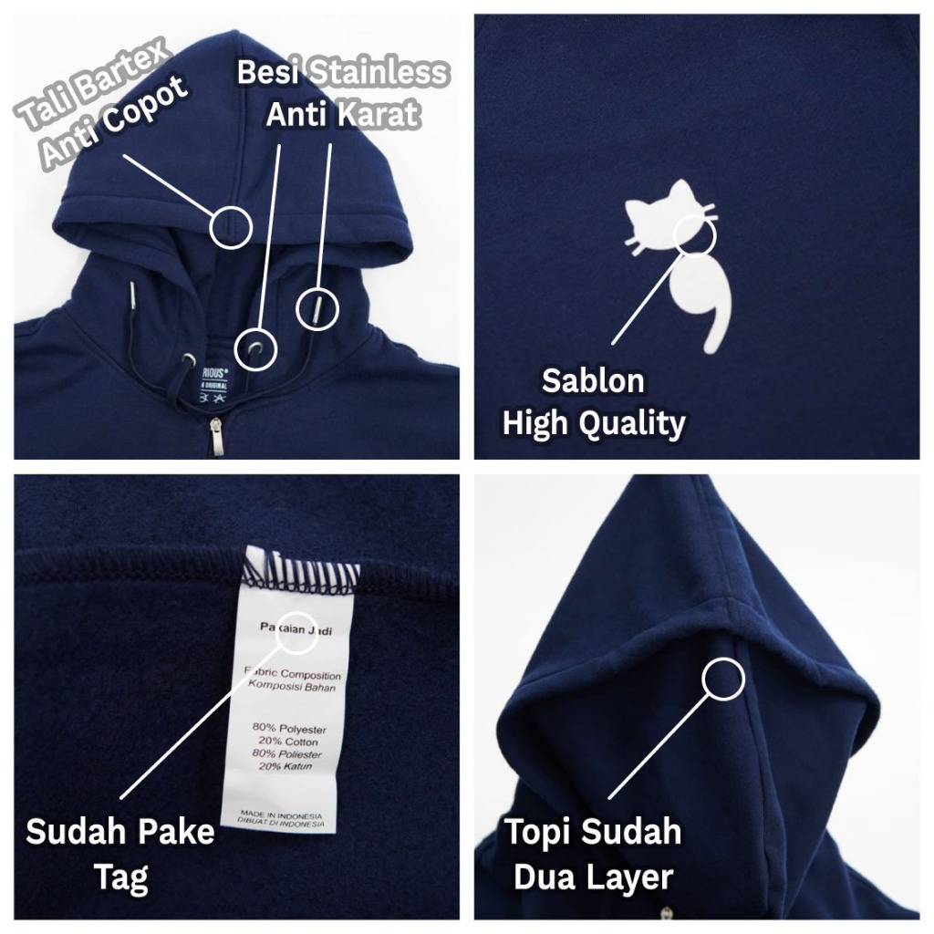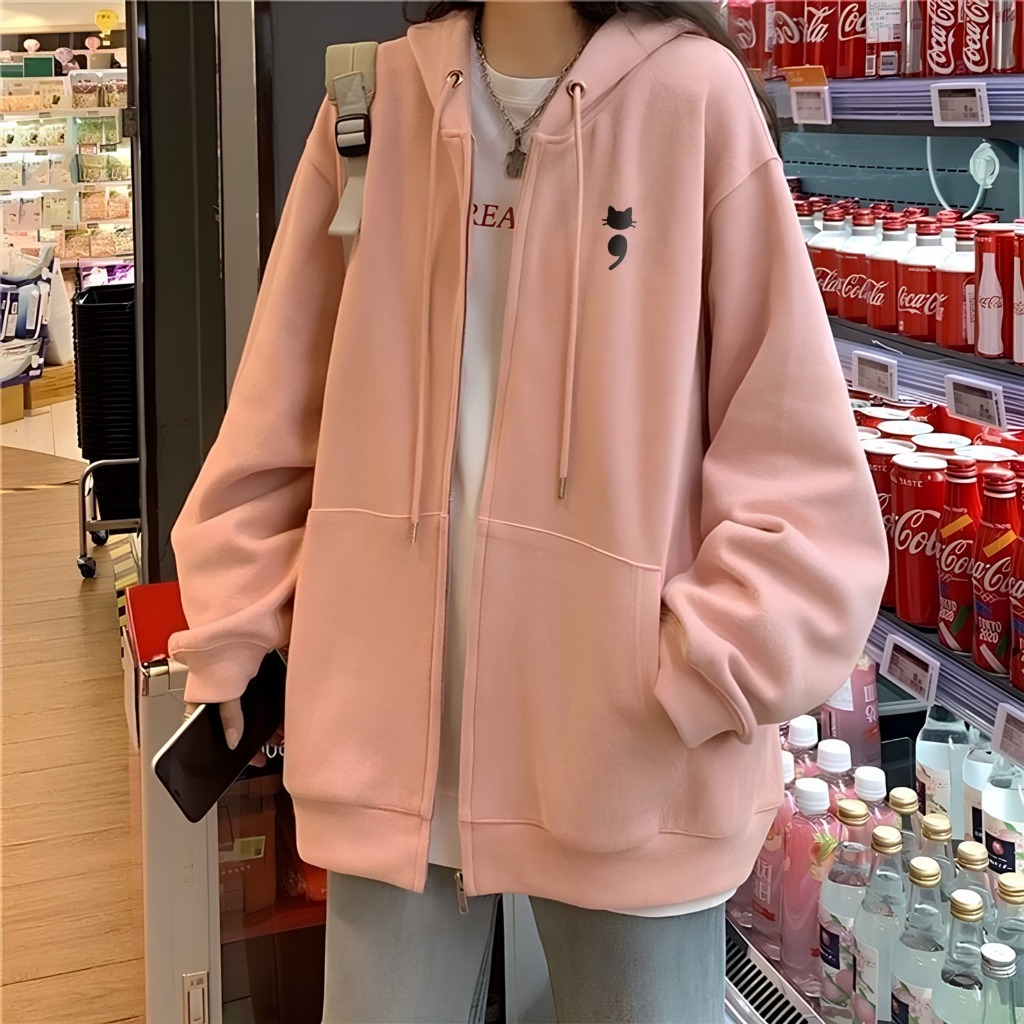 Parisdivarious Jaket Zipper Comma Cat Bahan Fleece Premium Tebal Size S - XXL (Pria & Wanita)