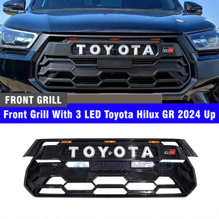 Grill Grille Toyota Hilux Revo Z GR 2024 & Up Lampu LED Black Gloss