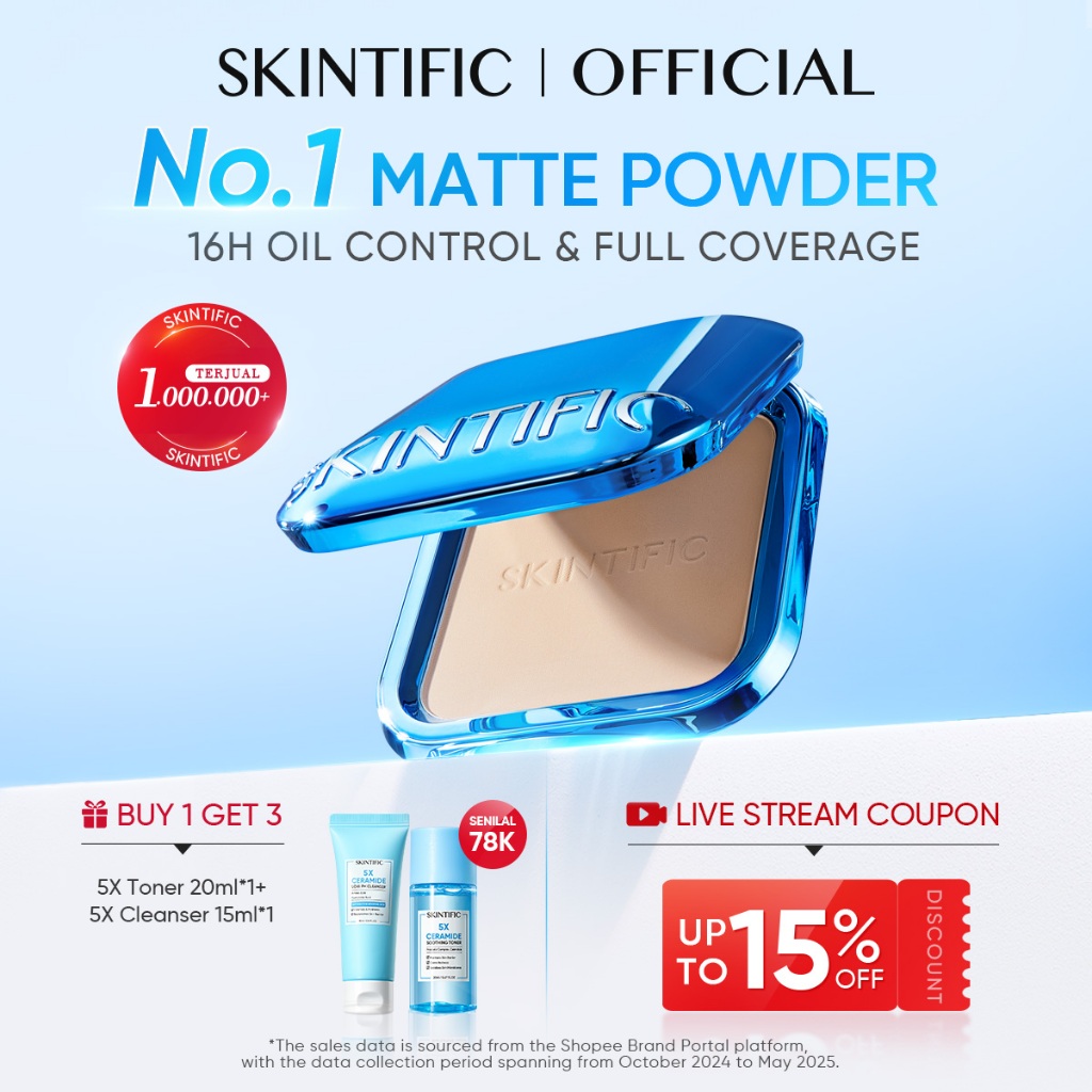 SKINTIFIC - Ultra Cover Powder Foundation 9g | Two Way Cake Pressed Powder Matte Bedak tabur Padat ori Compact Merataka