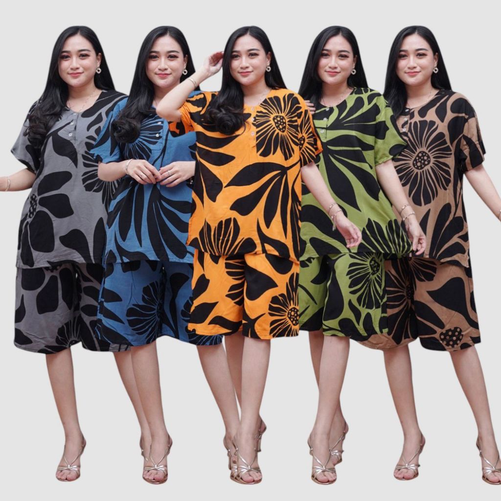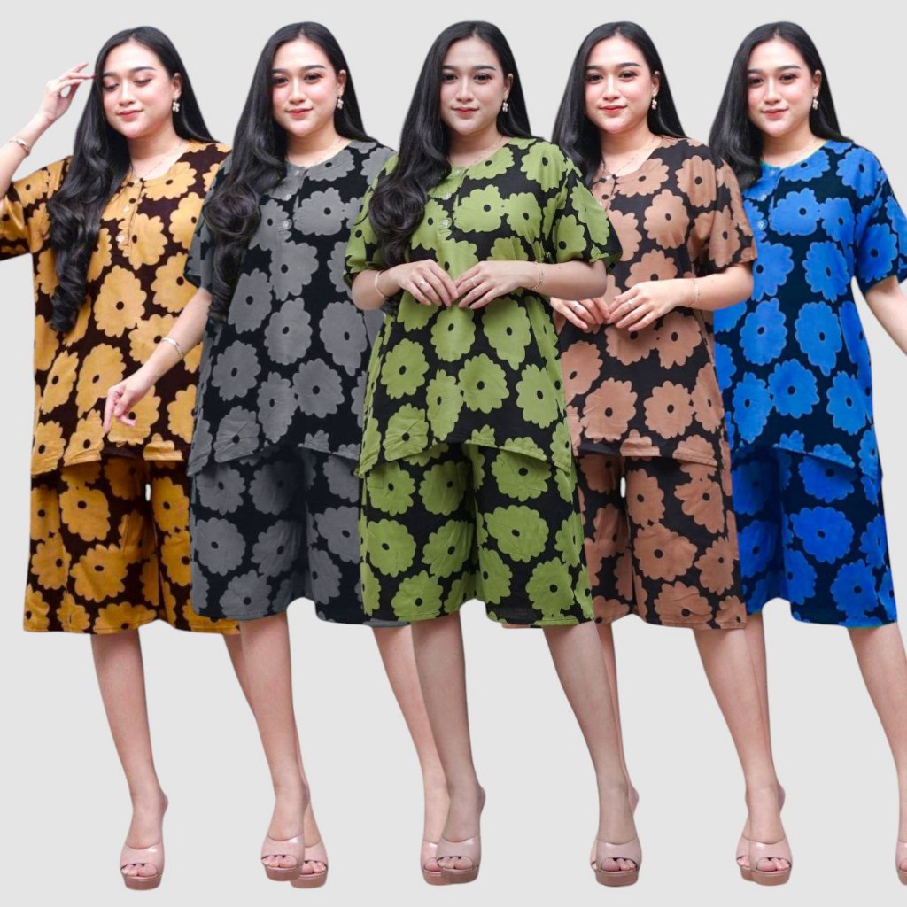 Prass Official - Setelan Rayon Kulot Jumbo LD 115 Baju tidur santai - Lengan Pendek Kancing Depan