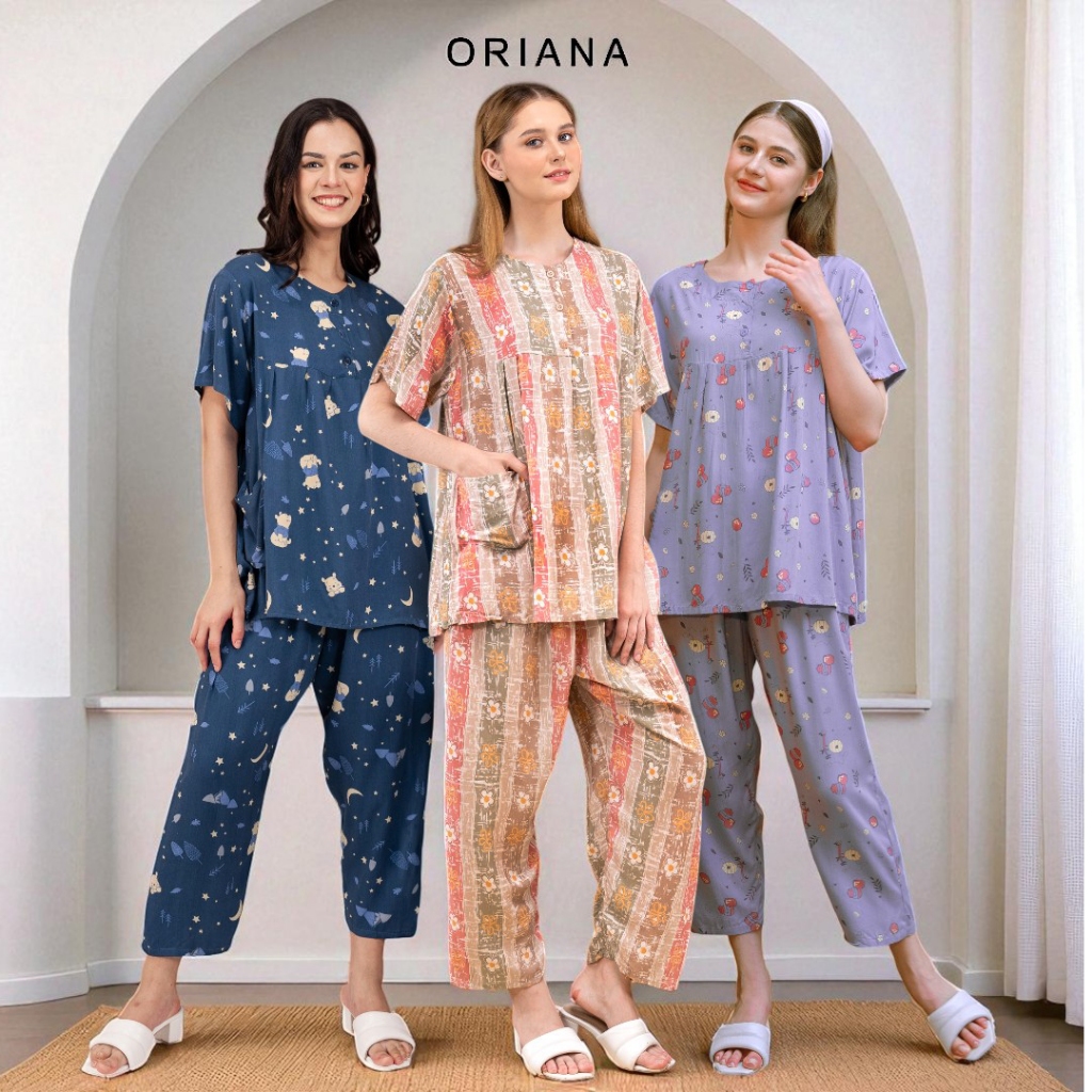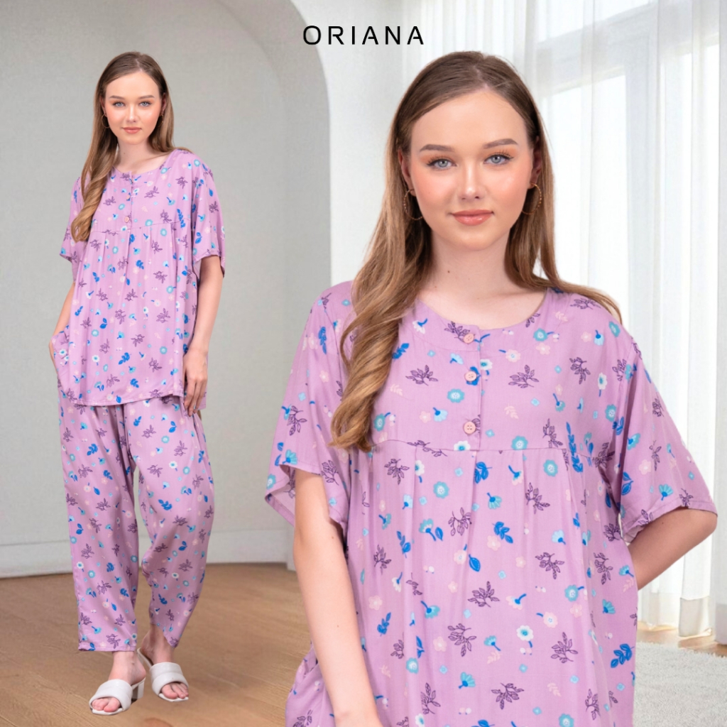 Oriana Sleepwear Piyama Lengan Pendek Puthi Collection Allsize I Baju Tidur Pajamas One Set